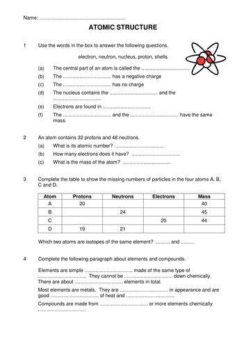 Chapter 4 atomic structure worksheet answers core teaching. An awesome collection of free atomic structure worksheets for teachers. Atomic structure ions isotopes worksheets teaching resources tpt. The number of protons in. Basic atomic structure worksheet answers 1 a protons b neutrons c electrons a positive b neutral c negative 2 atomic number or identity.
